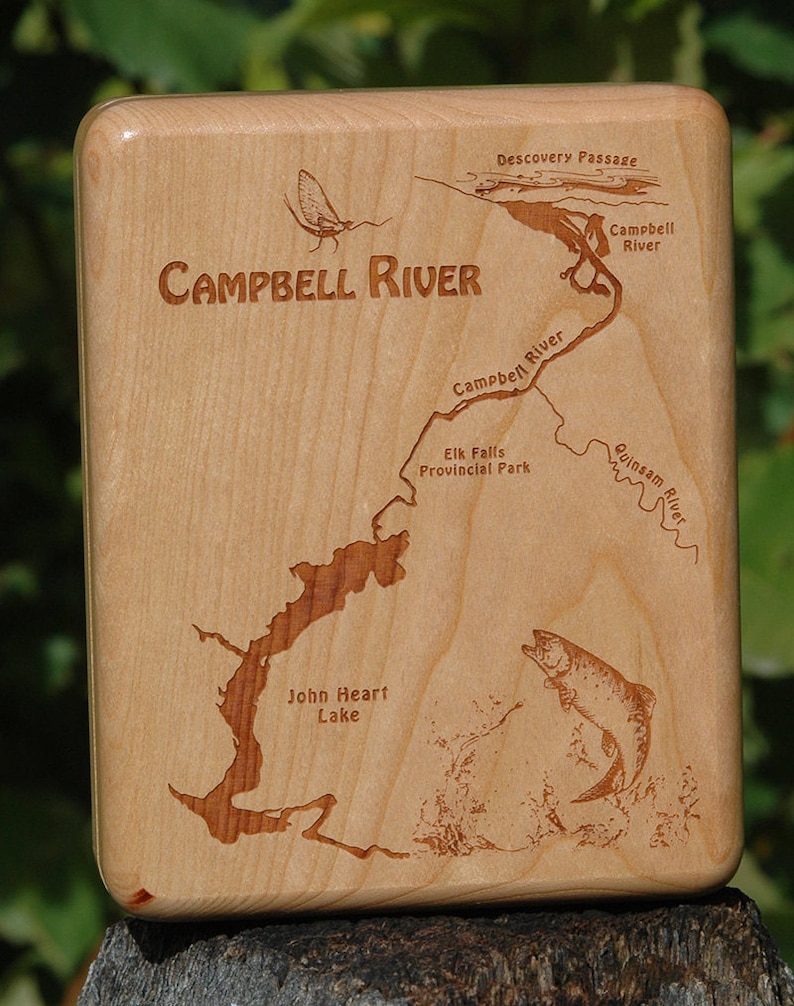 Fly Box Campbell River Map Fly Fishing Canada Handcrafted Laser Engraved Personalized With Name Inscription And Choice Of Artwork